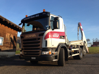Transportiert Baumaterial, Maschinen, Aushub, Humus - zum richtigen Zeitpunkt an den richtigen Ort